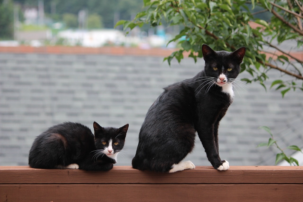 사진 = 담장에 앉아 있는 검은 고양이 두 마리