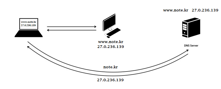 지금 이 글을 읽고 있는 인터넷 주소창에 note.kr이라고 직접 입력했거나 네이버, 구글과 같은 검색엔진을 통해서 접속을 했을 것이다. 인터넷을 사용하기 위해서는 27.0.236.139과 같은 숫자 형식의 IP주소로 접속을 해야 하는데, 이러한 주소를 우리가 기억하고 사용하기 쉽도록 문자로 표현한 것이 도메인이며 여기에서는 note.kr이 도메인 이름이다.