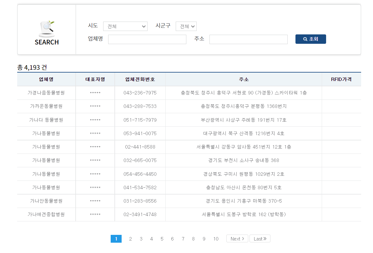 - 동물등록 사항 조회 (동물보호관리시스템)