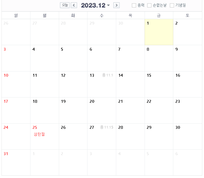 2023년 계묘년(癸卯年, 검은 토끼의 해)에는 일요일을 포함해 쉬는 날인 공휴일이 총 68일이다.