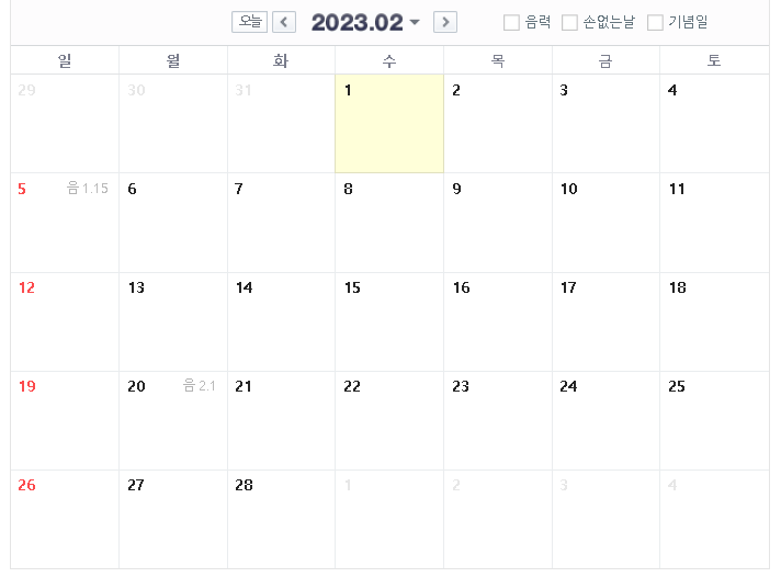 공휴일은 없으나 5일 정월대보름과 14일 밸런타인데이는 기억해야 한다.