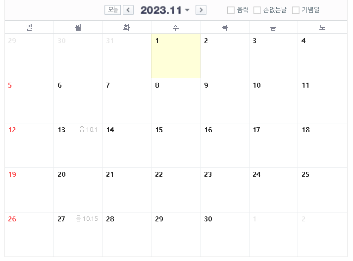 | 9월 28일 ~ 30일 | 추석 | 목 ~ 토 |