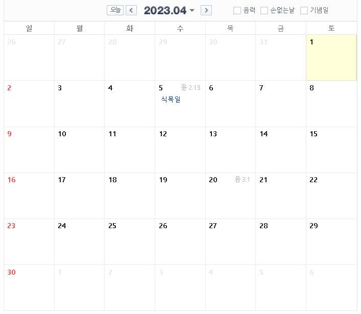 2023년 계묘년(癸卯年, 검은 토끼의 해)에는 일요일을 포함해 쉬는 날인 공휴일이 총 68일이다.