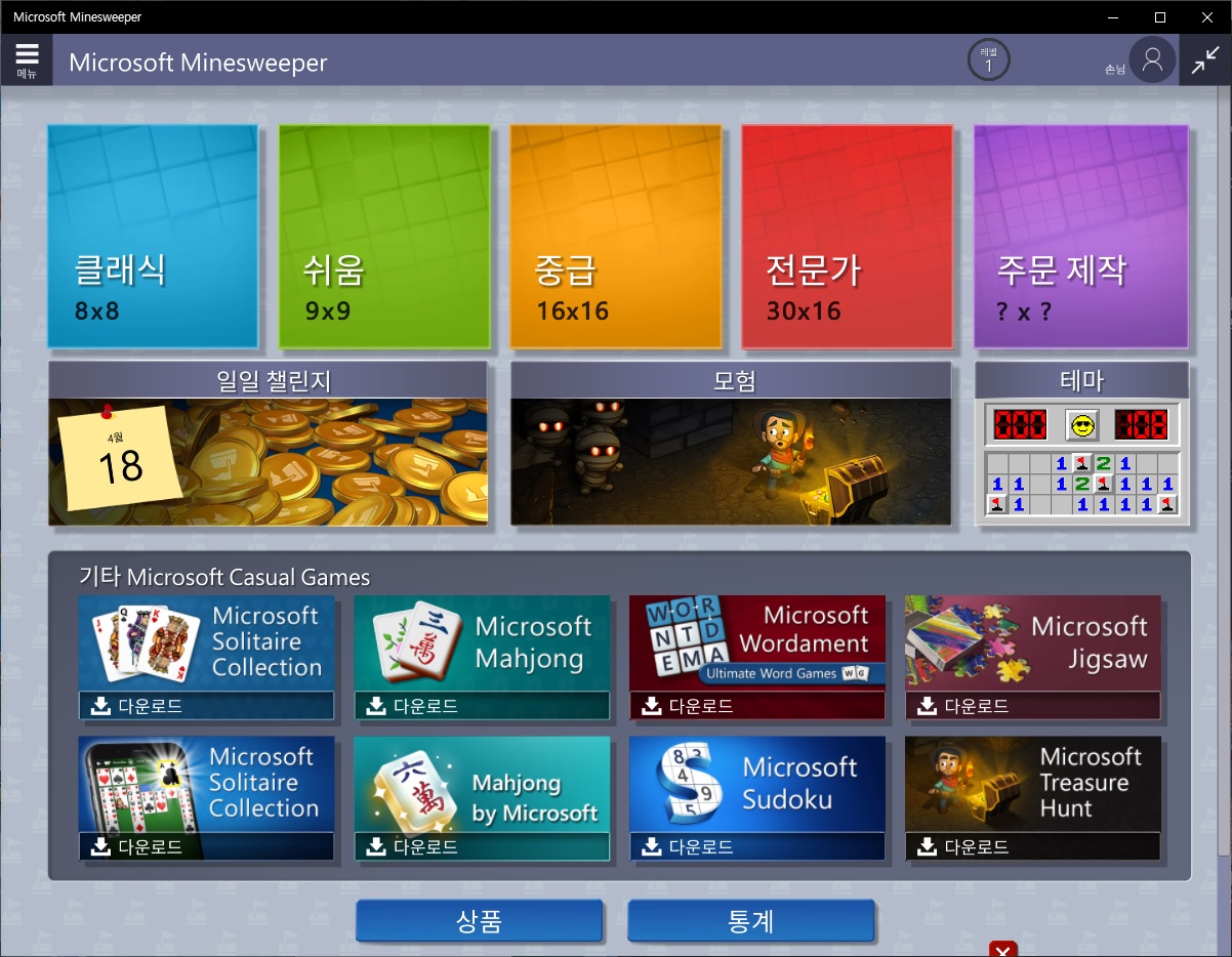 지뢰찾기 게임이 윈도우 8(Windows 8) 이후부터는 기본적으로 탑재되지 않고 있어서 마이크로소프트 스토어에 방문해서 다운로드해야 한다.