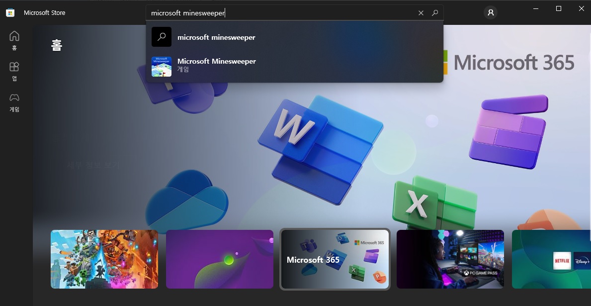 지뢰찾기 게임이 윈도우 8(Windows 8) 이후부터는 기본적으로 탑재되지 않고 있어서 마이크로소프트 스토어에 방문해서 다운로드해야 한다.