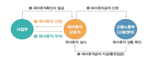 | 구비서류 | · 육아휴직 신청서 · 육아휴직 확인서 · 임금대장 또는 근로계약서 사본 |