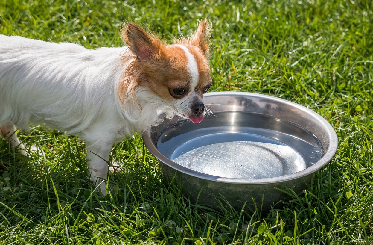 더운 여름에는 강아지도 탈수 증상을 겪을 수 있으므로 시원하고 깨끗한 물을 충분하게 제공해 주는 것이 좋다. 특히 산책 등 야외 활동을 할 때에는 헐떡임과 땀으로 인해 탈수 증상을 쉽게 겪을 수 있으므로 휴대용 물병에 시원한 물을 담아 자주 먹여주는 것이 필요하다. 실제로 여름에는 강아지의 수분 섭취량이 최대 50% 정도까지 늘어나며, 물을 마시는 것으로 체온을 낮추고 열사병을 예방하는 등 건강을 유지하는 데 큰 도움이 된다.